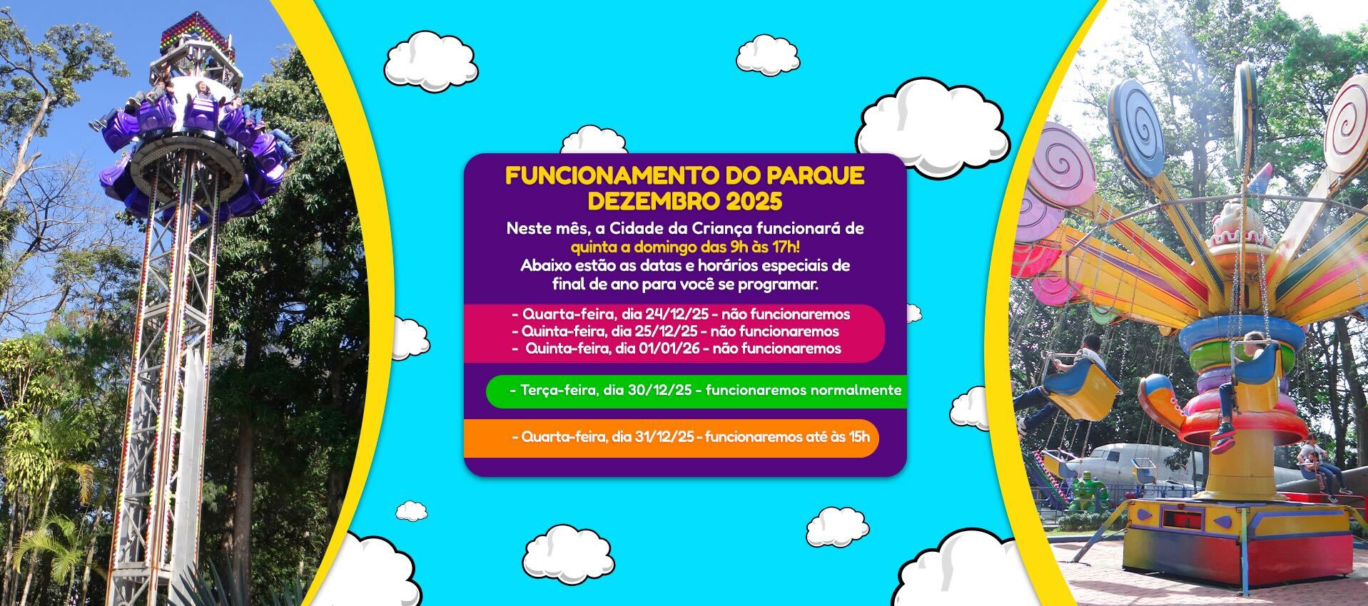 No mês de Dezembro de 2025, funcionaremos de quinta a domingo das 9h às 17h.